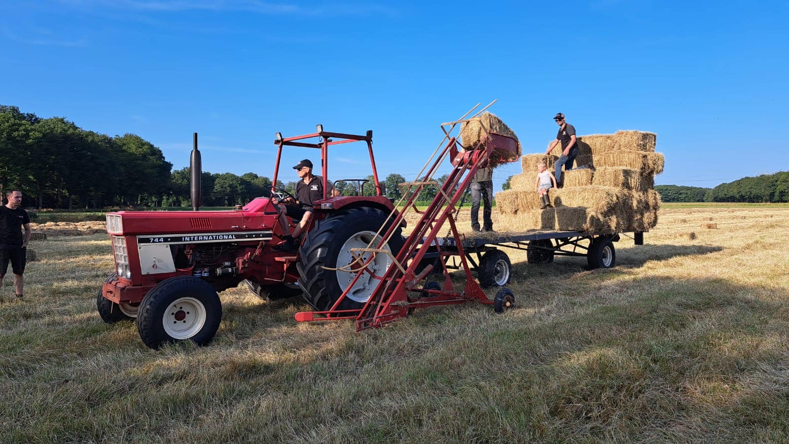 Afgelopen weekend was het weer tijd voor de jaarlijkse traditie, hooien! Normaal gebruiken we alleen nog maar grote pakken, maar voor de kalfjes en de schapen laten we altijd nog ongeveer 100 kleine balen persen. Ook hebben we de eerste vracht ronde balen hooi opgehaald gisteren en hebben we nog een aantal grote pakken laten persen. Aankomende week verwachten we nog 2 combinaties vol hooi en beginnen we met de tweede snede te maaien, dus met de wintervoorraad moet het goed komen dit jaar! Iedereen die heeft meegeholpen willen we bij deze nog even bedanken!